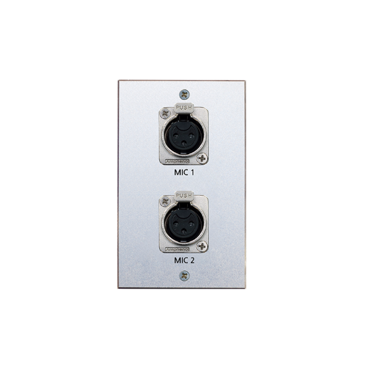 마이크를 벽부에 연결하게 해주는 2채널 잭 판넬이며 전면에는 마이크전용 XLR잭이 매립되어 있다.